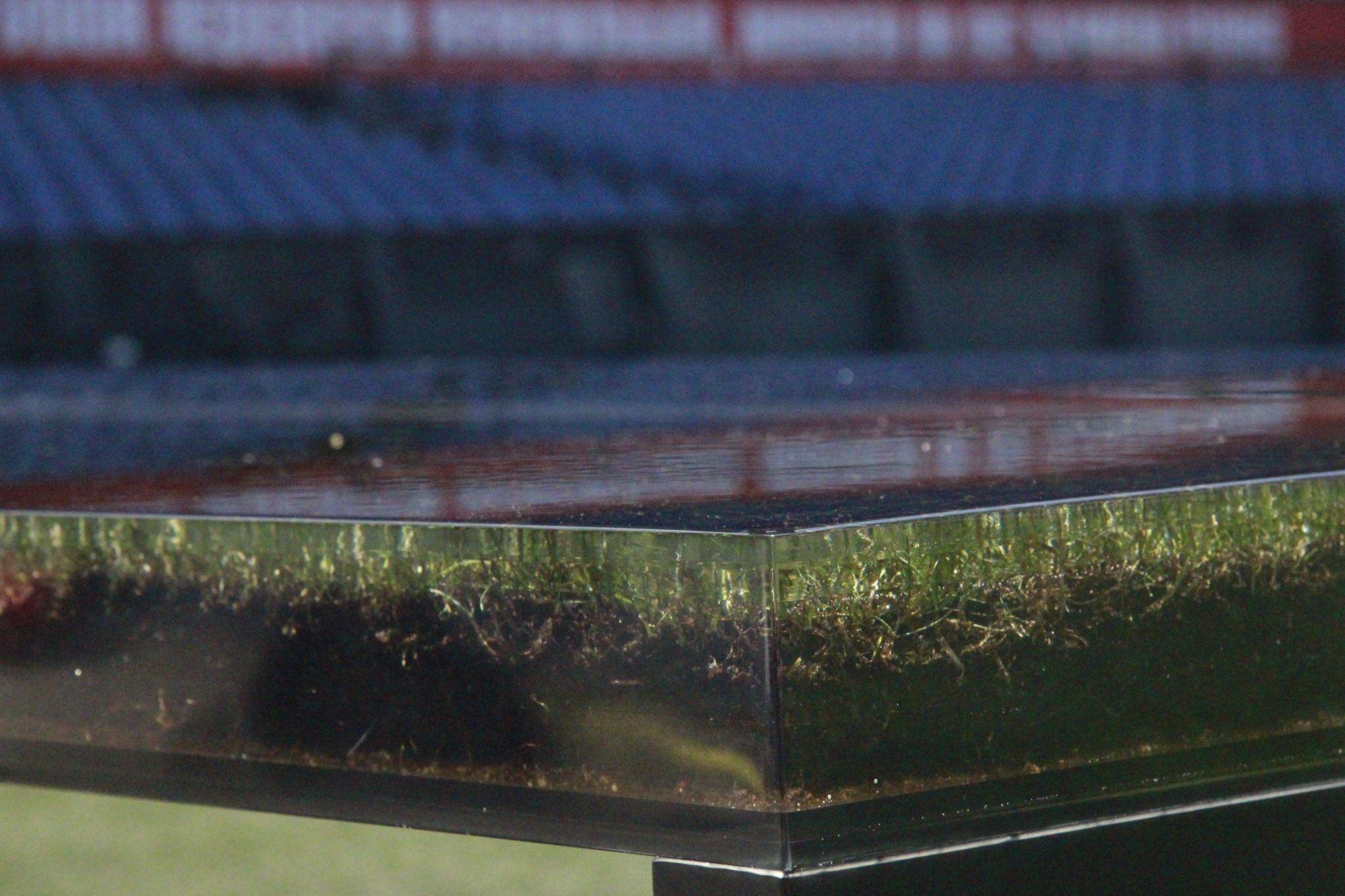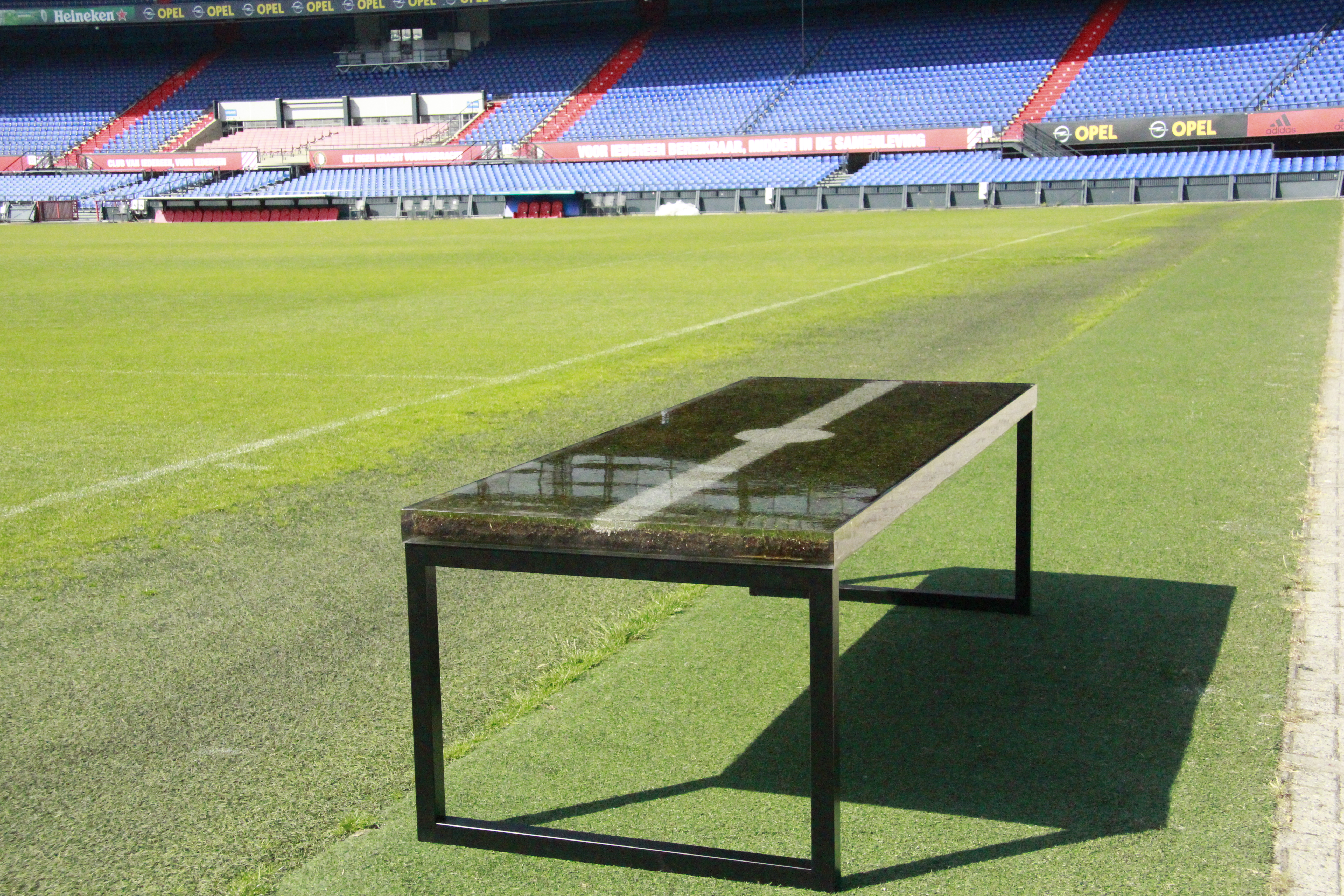is gras van het beste veld van Nederland uniek, maar écht uniek als het ook nog eens kampioensgras is. En is een tafel gemaakt van de middenstip uniek, maar écht uniek als daar ook nog eens de handtekeningen van de kampioenen op komen staan. Met deze tafel van 1 x 2,5 m is een stukje clubhistorie in epoxy gegoten. Een exclusief object dat tot in de lengte van dagen een herinnering zal zijn aan een waanzinnig kampioensseizoen van Feijenoord. Hier: http://www.densvastgoed.nl vind u een film van het verhaal.