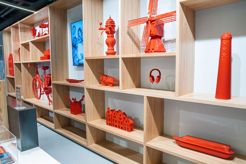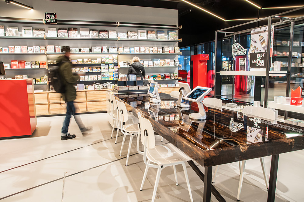 Een tafel met in epoxy gegoten oude balken. Ook verweerd hout krijgt zo een tweede leven en blijft behouden. Te zien in de Y hal van Amsterdam Centraal Station voor IAMSTERDAM.